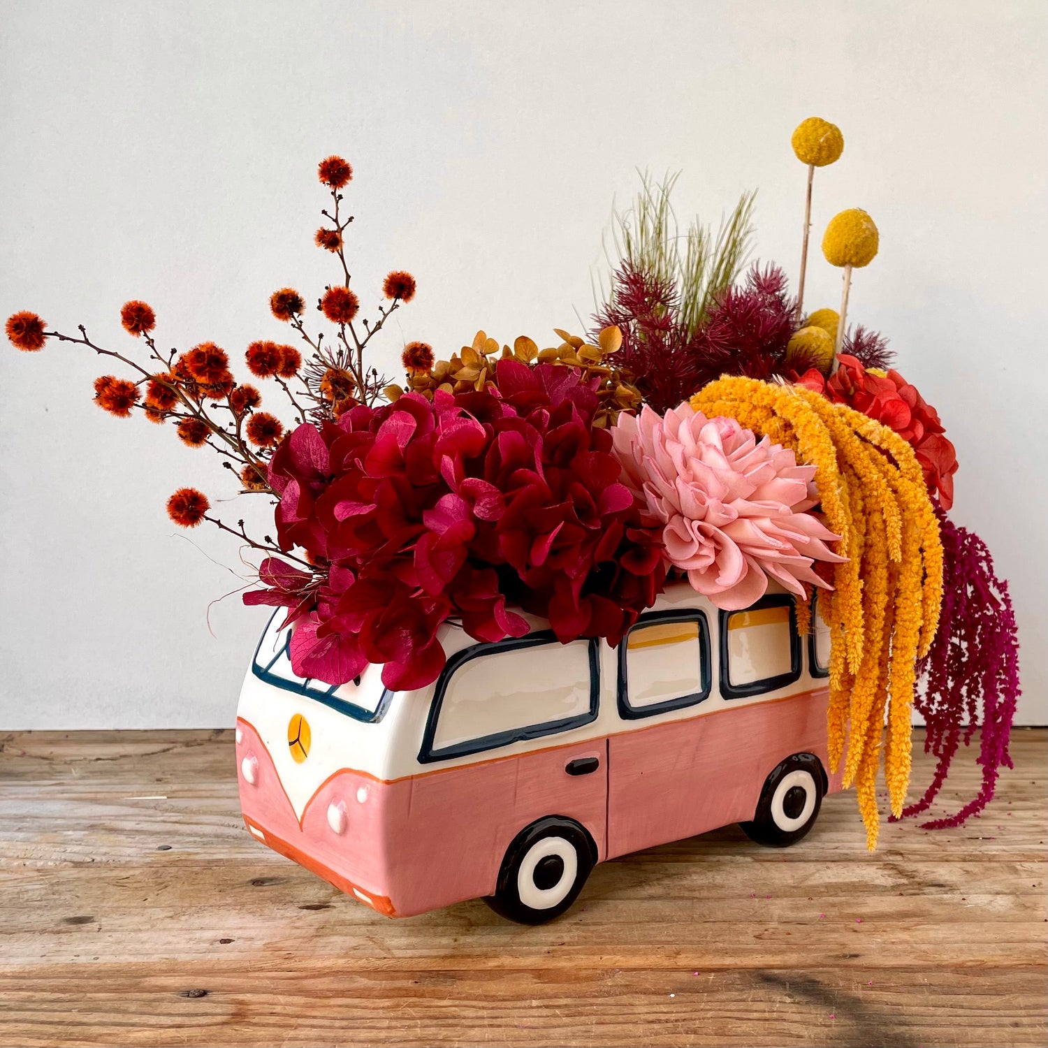Our Everlasting arrangements are made with dried and preserved native florals...