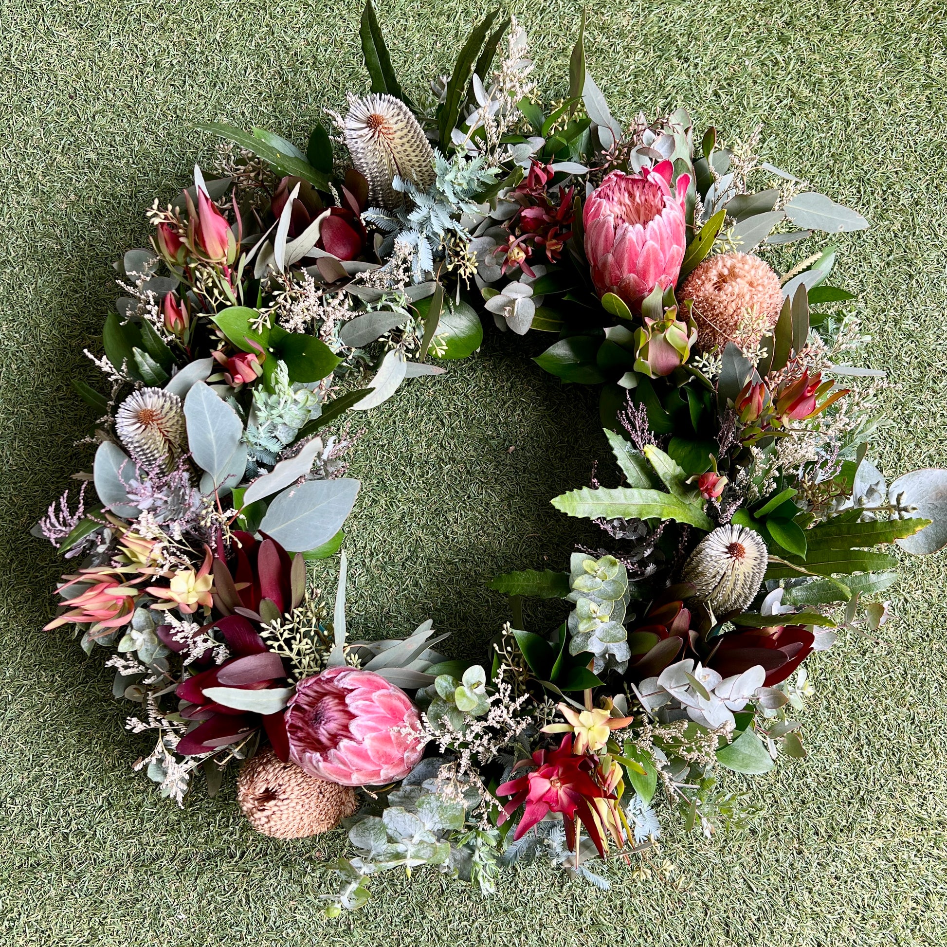 When words aren’t enough, flowers can gently speak for you. Our Whispering Gum wreath is a thoughtful, natural tribute crafted with beautiful seasonal natives — each bloom chosen for its resilience, beauty, and quiet strength. Designed to honour and comfort, this wreath is perfect for sending heartfelt sympathy and condolence messages when you want to let someone know you’re thinking of them. Handcrafted with care and respect, it’s a meaningful way to offer love and support during difficult times.