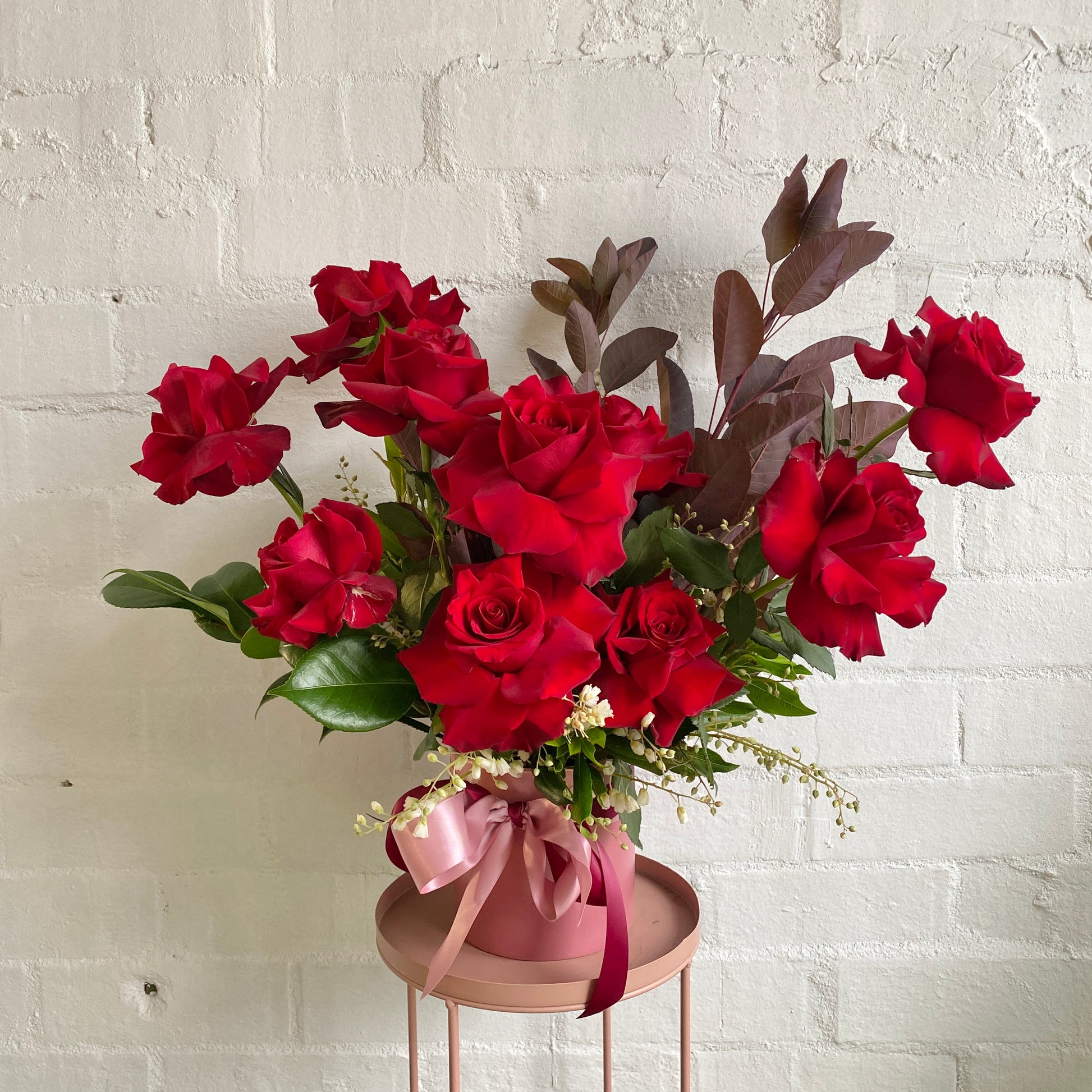 The most romantic gift of flowers is of course, Red Roses. This beautiful arrangement is a show stopper that will totally wow everyone.
