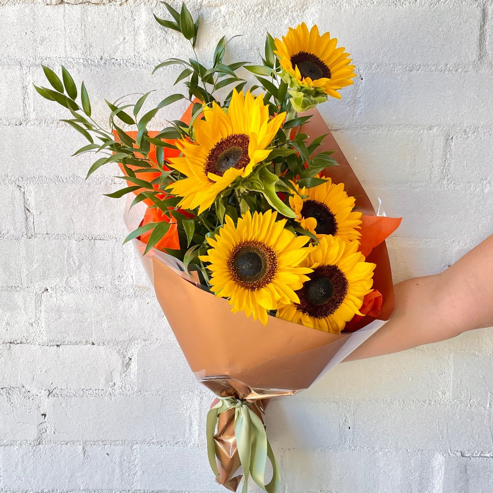 The brightest, happiest flower there ever was. Sunny days is a beautiful sunflower bouquet with a selection of greenery.